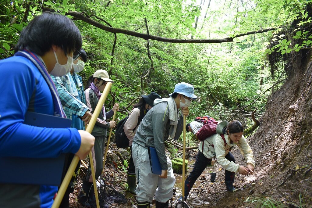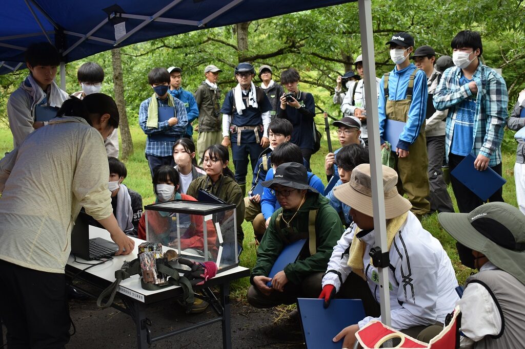 『自然環境調査体験プログラム2023』の「両生類・爬虫類・哺乳類班」はトラップでの捕獲、自動撮影カメラの設置、それらの確認や捕獲した生き物の観察の他に「フィールドサイン法」という痕跡(足跡や食痕)を探す調査法を実践していきます。
