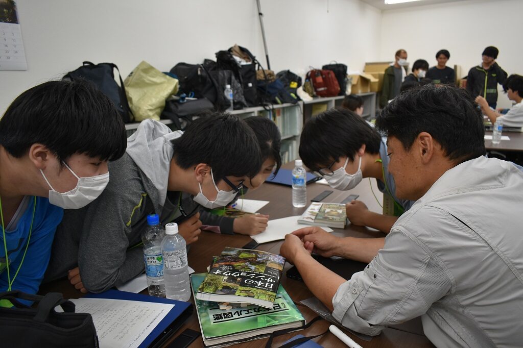 午後の同定作業では、捕まえたり、痕跡を見つけた生き物達をホワイトボードに書き出して、一種づつ説明聞いたり、明日のワークショップで自分が作成を担当する調査票の対象を決めたり。