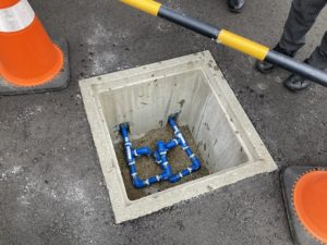 不凍液が循環するUチューブの埋設状況が分かるように寒い中、開けて見せて下さいました。